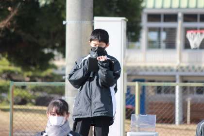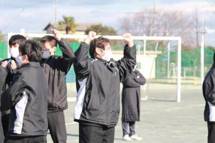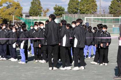 明祥中学校にまつわる12問のクイズに対して、全校生徒で○か×の場所に移動して答えました。