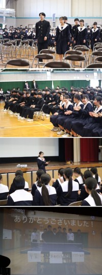 両顧問からの熱い言葉の後、校長先生からも激を飛ばしていただいて、いよいよソフトテニス部女子 3年7名 2年3人 1年2人が出陣しました。午後からの試合に備え、朝から今まで汗を流してきたコートで練習をし、身体を慣らしました。力を尽くしてきてください。