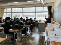 各々が職場体験学習先で大変だったこと、学んだこと、これからの自分に生かしたいことなどを考え、資料としてまとめたものを学級ごとに発表を行いました。