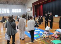 1,2年生にチラシ配り