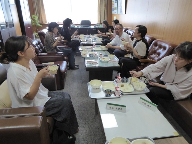 ランチ会議を開催し、給食を食べてから会議を行いました。