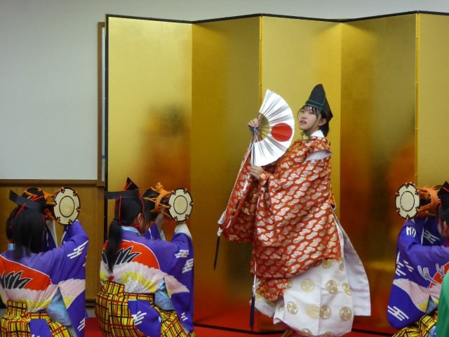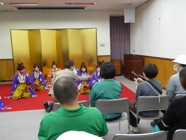 あいにくの天気となり、安城市歴史博物館の石舞台ではなく、室内での三河万歳公演となりました。観客席との距離が近く、演技する真剣な表情や息づかいが伝わってきました。