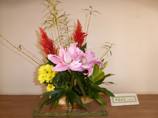 花材:こうり柳、百合、ケイト、スプレー菊、ドラセナ
