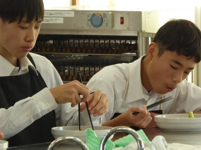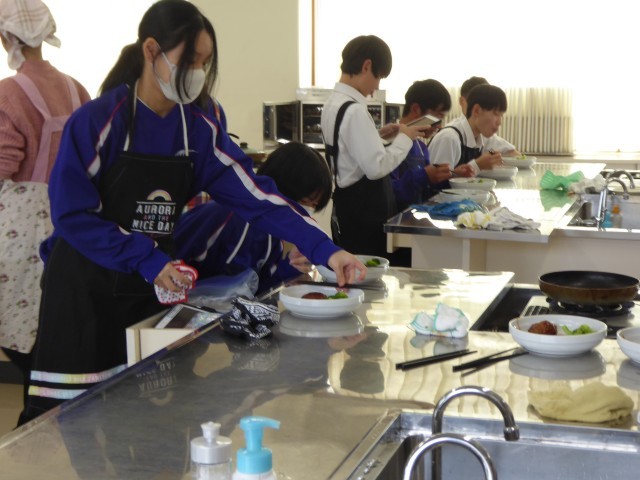 家庭科で調理実習を行いました。ハンバーグが中心のメニューです。生徒から、家族のために作ってあげたい、と言う声が聞こえました。