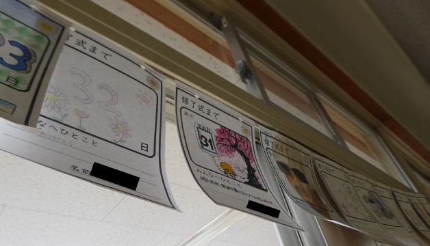 各学級では、手作りカレンダーで本年度の残りの日数を示し、最後の思い出作りをしています。