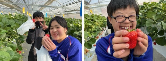 11、12組で、学校近くの丸福苺園さんに校外学習に行き、苺の育て方や摘み方を教わりました。甘くってとってもおいしい苺もいただきました。