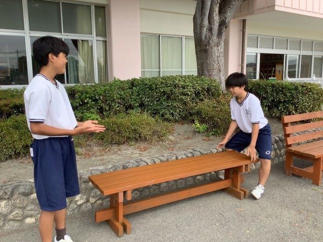 次に、IJK組の先輩が製作したベンチが少し劣化していたので、修繕し、塗装をし直しました。