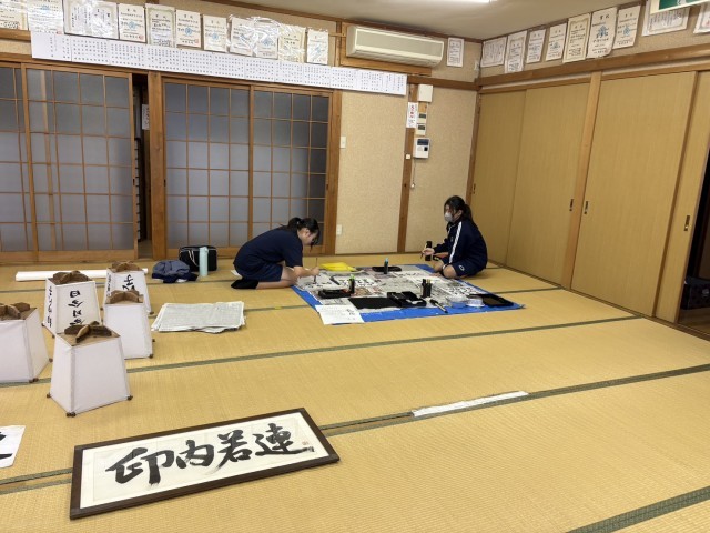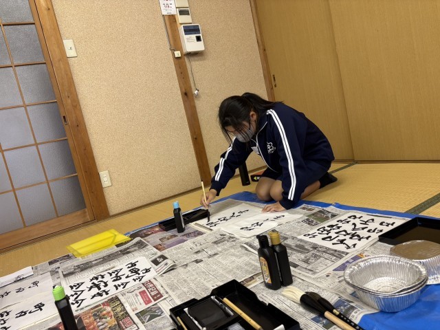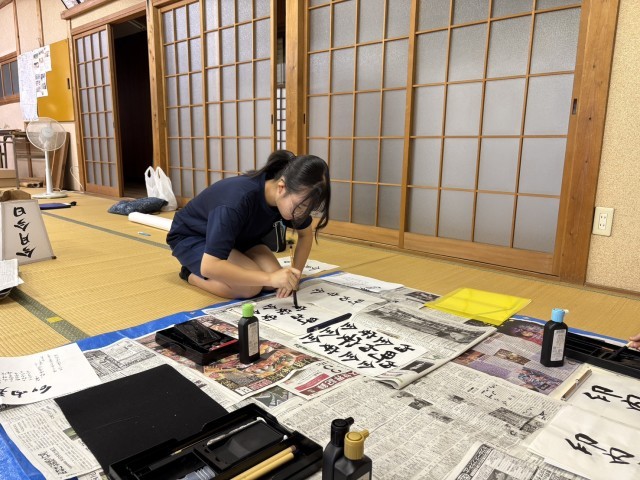 地域文化をつなぐ 公開日 2025/10/19 更新日 2025/10/19 校内の様子 桜井神社例大祭にて毎年お囃子の奉納があります。このお囃子を次の世代に伝えたいという地域の方の願いがあり、今年度はお祭りにもっと関心をもってもらえるように、お囃子に使用する山車と梵天、辻行灯への文字を書いてほしいと、「つながるーむ」に依頼がありました。本日生徒2名が参加し、公民館で書き入れを行いました。今年度の桜井神社例大祭は10月26日(日)です。お祭りでぜひ山車等にご注目ください。 いいね(3) コミュニティ・スクール