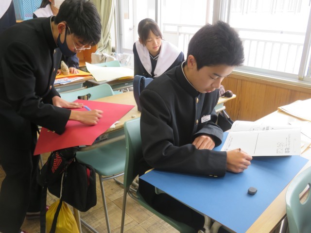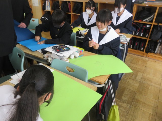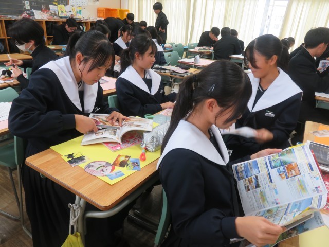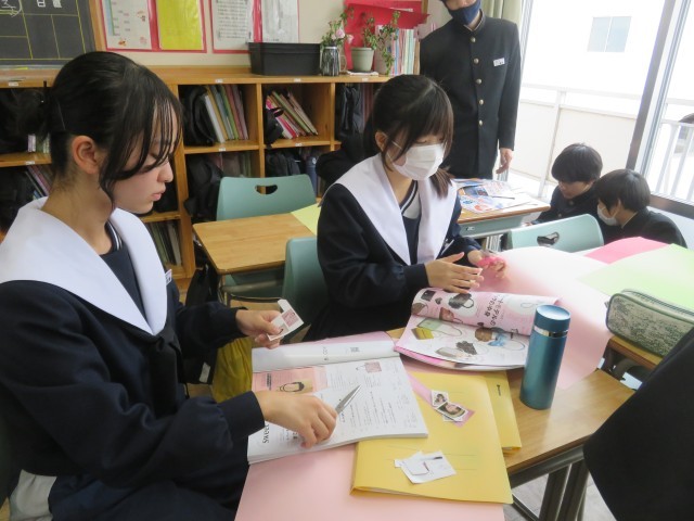 【2年生】MIRAI-MAP制作が始まりました! 公開日 2025/11/13 更新日 2025/11/13 校内の様子 本日は、MIRAI-MAPの制作を行いました。10年後の自分は何をしているのかを想像しながら、雑誌の写真を切り抜いたり、画用紙に文字を書きこんだりしていました。 +3 いいね(0)