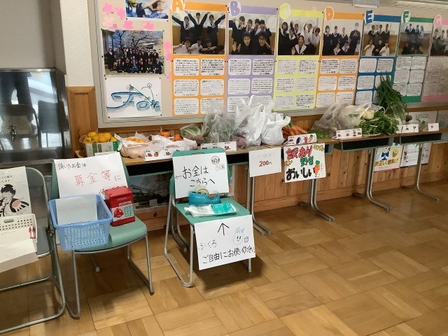 野菜の無人販売を行います 公開日 2025/11/19 更新日 2025/11/19 校内の様子 1年A組の総合的な学習での企画です。地域の農家などで出た「訳アリ」の野菜を販売し、食品ロス削減に貢献することを主なねらいとして実施します。11/20(木)、ご来校の折には、1年生昇降口にもぜひお立ち寄りください。 いいね(0)