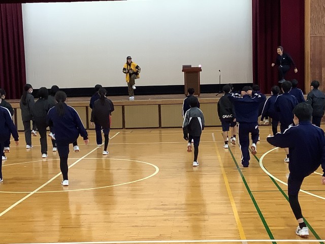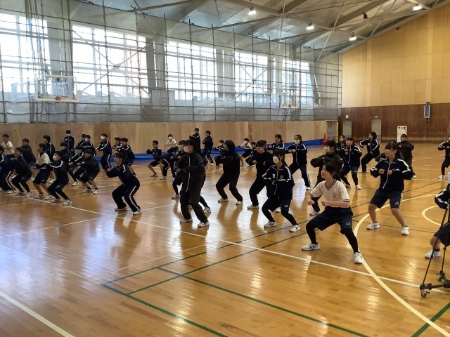 【1年生】体育「ダンス」の授業 公開日 2025/12/04 更新日 2025/12/04 校内の様子 講師の人といっしょに体を動かしました。リズムに合わせて講師の動きをまねするうちに、自然とダンスの形になっていきました! いいね(0)