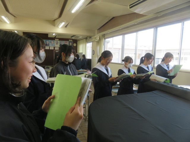 本日の音楽の授業では、立志の会に向けて合唱曲「名づけられた葉」の練習を行いました。