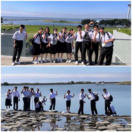 A組、葛西臨海公園の様子です。カニやクラゲを探すなどして楽しんでいます。