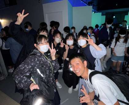 C組はアクアパーク品川到着。屋内バイキングでアトラクションを楽しんでいます。