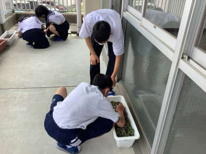 技術の授業で植えたラディッシュが立派に成長していました。