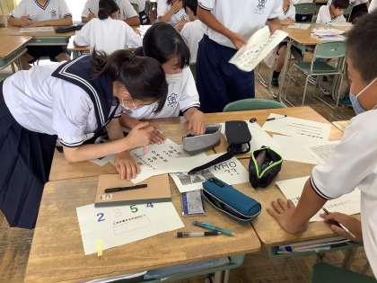 1年生 ”初”学年レクを行いました! 公開日 2023/07/18 更新日 2023/07/18 校内の様子 数人のグループになって、協力してなぞ解きを行いました。 グループのみんなと協力・分担をしながら、全学級がクリアを目指して一丸となって取り組んでいました。 いいね(0)