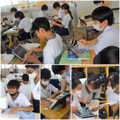 2学期も仲間とともに《確かな学力の定着》 公開日 2023/09/06 更新日 2023/09/06 校内の様子 教室をのぞくとあちらこちらで学び合いをしていました。 社会科の授業では、1時間の学びについて、アプリのクイズで競いながら成果を確かめていました。 「あなた」がいるから「わたし」の学びが充実します。 いいね(0)