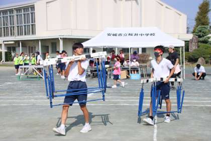 体育大会予行演習 公開日 2023/09/28 更新日 2023/09/28 校内の様子 10月5日の体育大会に向けて、予行演習が行われました。当日のプログラムを進行しながら、各競技の入場から退場までの流れや、担当する係の仕事を確認しました。そして予行演習後は、どの学級も応援合戦の練習に真剣に取り組んでいました。暑い一日でしたが、それに負けないくらいの熱い気持ちを生徒たちから感じました。体育大会まで、あと1週間です。みんなで、盛り上げていきましょう! いいね(0)
