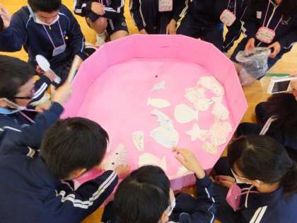 今日、安城特別支援学校の生徒を桜井中に招待し、交流会を行いました。2年F組の生徒が、楽しみながら交流できるようにと考えた、釣りゲームやもぐらたたきゲームなどを行いました。安城特別支援学校の生徒だけではなく、桜井中生もとても楽しそうでした。