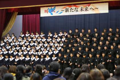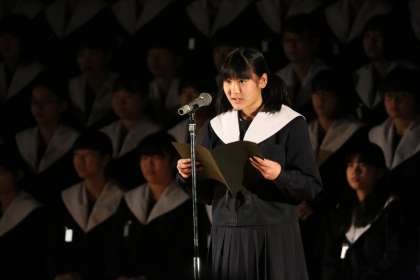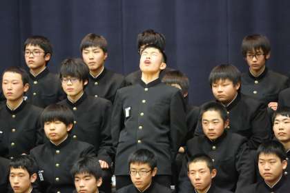 本日6時間目、2年生が立志の会を行いました。代表の生徒が今までの生活をふり返り、気持ちを前面に出し、心の底から思いを発表する姿が感動的でした。誓いの言葉では、2年生全員が自分への誓いを1人ずつ全力で叫ぶことができました。学年合唱の「青い鳥」は、今までの練習の成果が発揮され、本当に青い鳥が群れを成して飛び立つような歌声に体育館が包まれました。今日の会を機に、最高学年へより意識を高めていけるのではないかと感じました。
