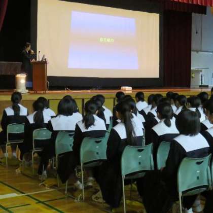 今日の5,6時間目に学校保健委員会が行われました。助産師さんを講師にお迎えし、3年生を対象に「命と性を考える」というテーマで、お話を聞きました。性についての話ということで、照れくさく感じる生徒もいたかもしれませんが、どの生徒も真剣な表情で話を聞いていたので、命の尊さを感じることができたのではないかと思います。