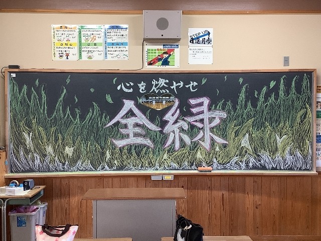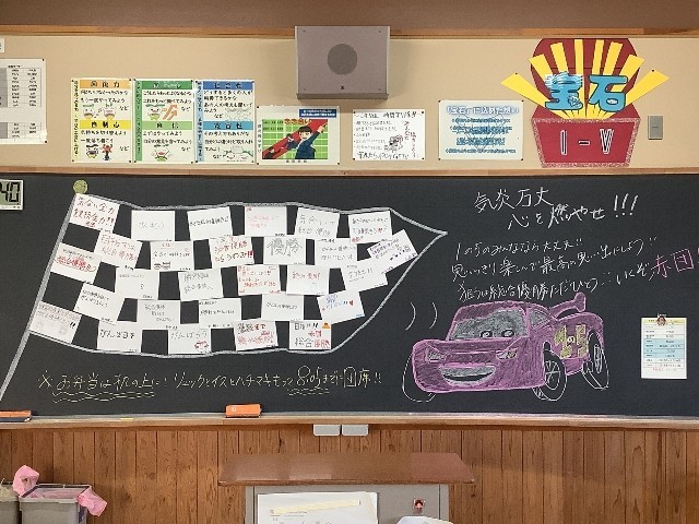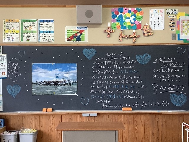 運動場とは別に,学級でも黒板やかけ声,エールの送りあい等