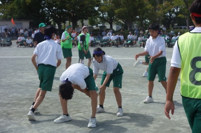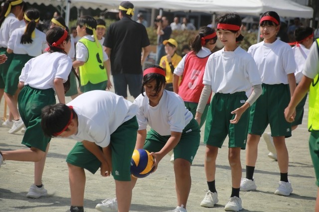 ボールを順繰りに上・下の順で後ろの人にまわしていきます。