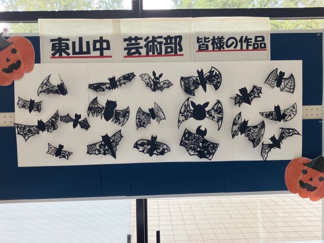 学区,北部福祉センターに本校芸術部の作品が飾られています。