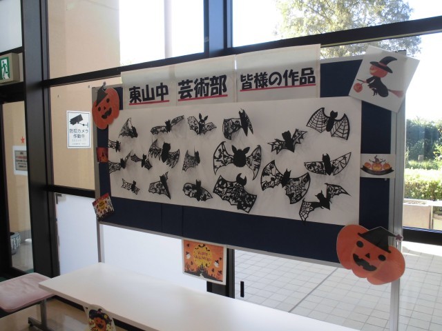 学区,北部福祉センターに本校芸術部の作品が飾られています。