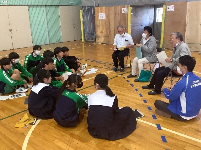 平日の日中に大規模災害が起こった場合には,特に中学生の皆さんが地区の活動の重要な担い手になるという話などをいただきました。
