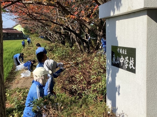 今日も学区の企業様2社の協力をいただき,30名弱のみなさんに学校の環境整備に協力をいただいています。