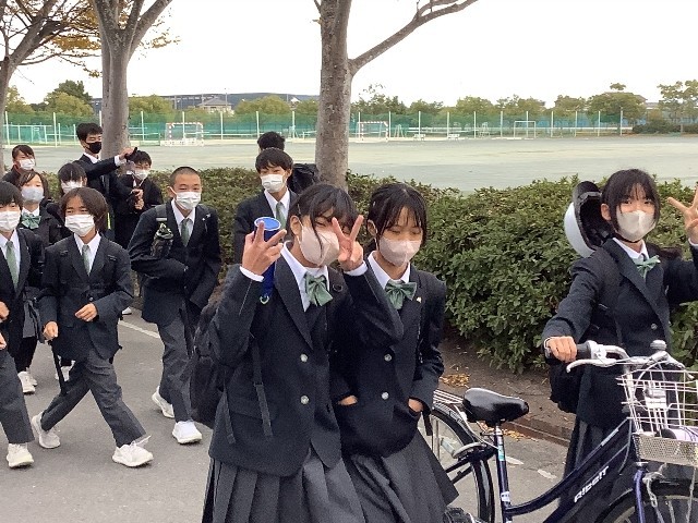 笑顔で帰る生徒の様子を写しました。