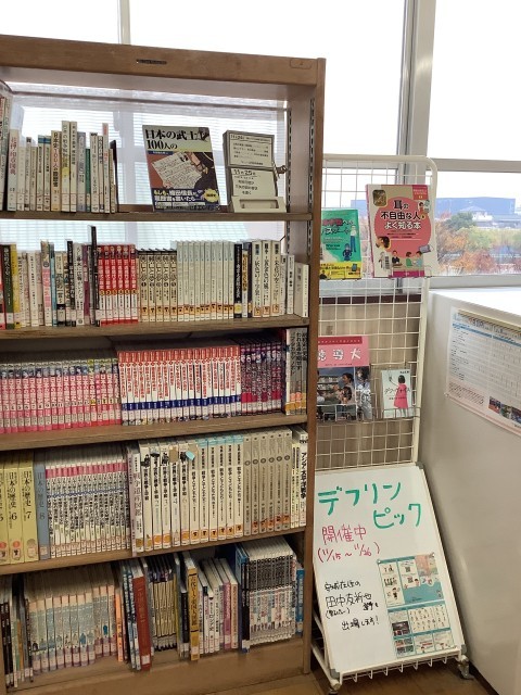 図書室は,デフリンピックや愛知に関する本が特設で紹介されています。