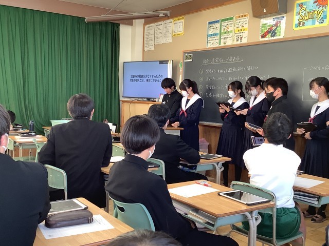 防災については、クラス全体の前で発表をおこなっているクラスもありました。