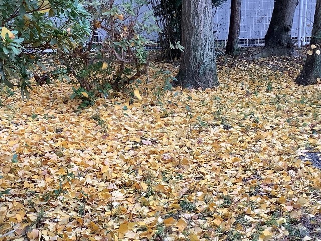 イチョウのじゅうたんが広がっています。今晩からぐっと寒くなるようです。