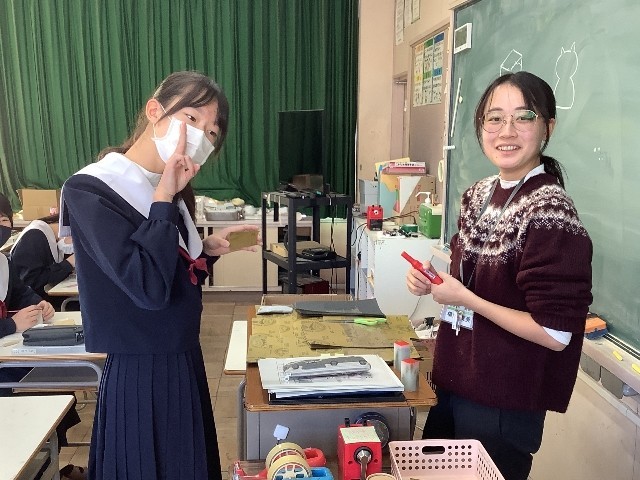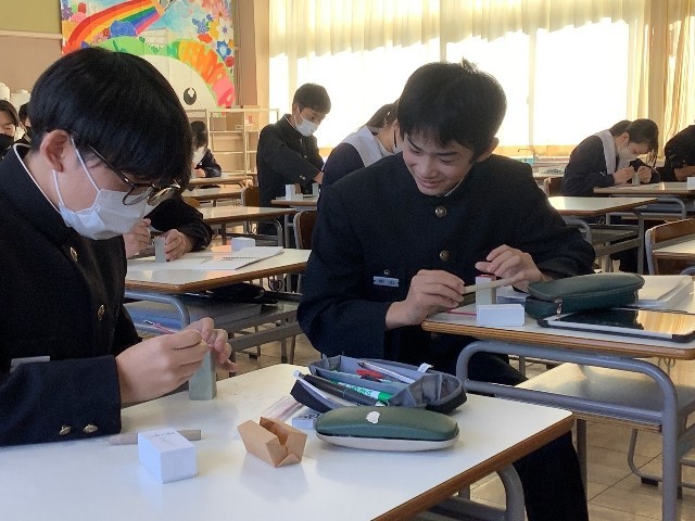 3年の美術は,切り絵が終わりハンコづくりをしています。