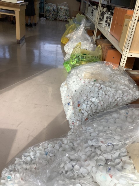 地域の多くの皆様のおかげでペットボトルキャップがたくさんになりました。