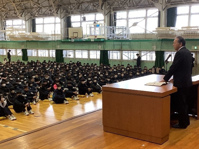 校長先生から2学期の総括,そして,3学期に向けて,生命と心を大切にというお話をいただきました。