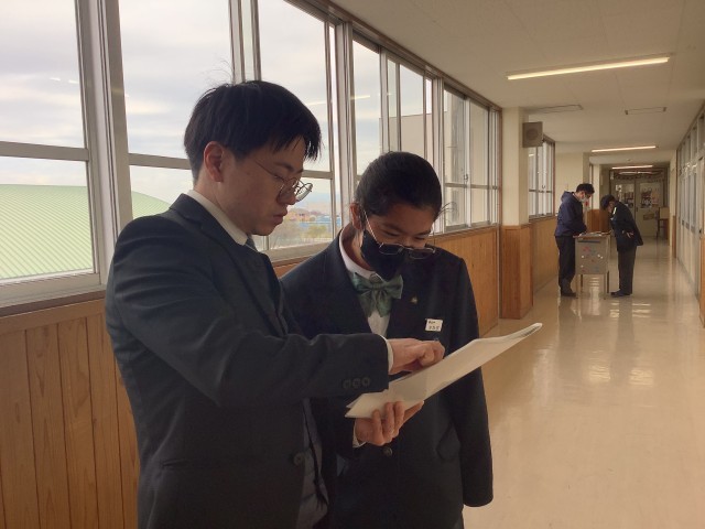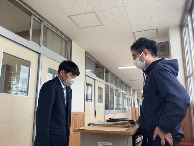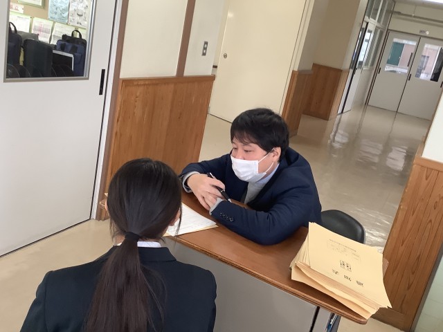 通知表渡しの時間では、生徒一人ひとりと面談をしながら、2学期を振りかえる場面がありました。