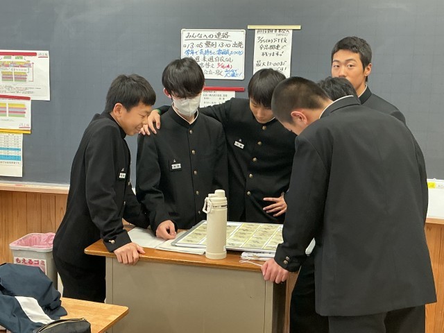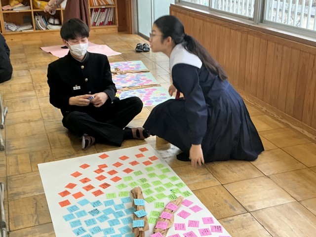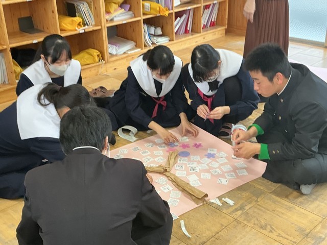 学校に残っている生徒は,自習&掲示づくりなどに取り組んでいます。
