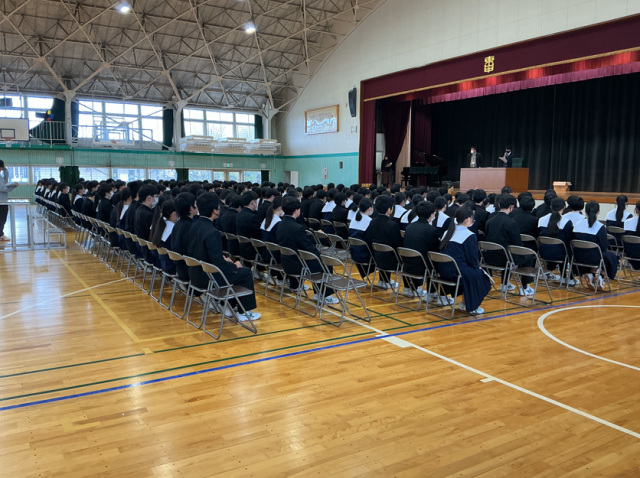 本日3年生は、卒業式練習をしました。