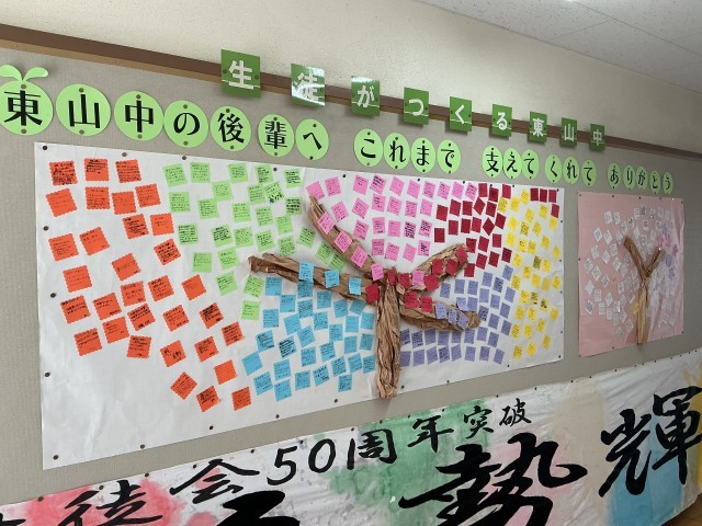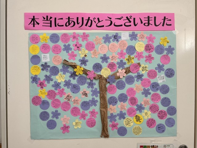 今週,校内では,3年生からお世話になった皆さん向けにメッセージが飾られています。