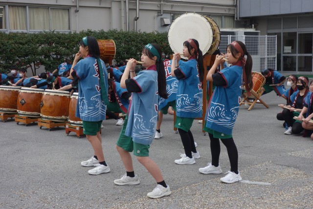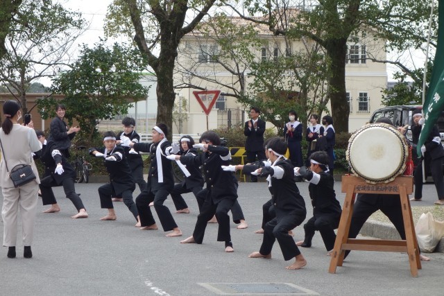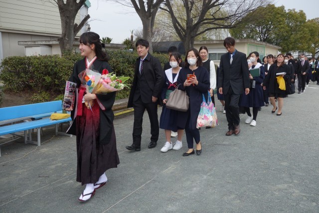 和太鼓演奏,応援団演舞,そして,在校生やお世話になった先生方の拍手の中を歩んでいきます。