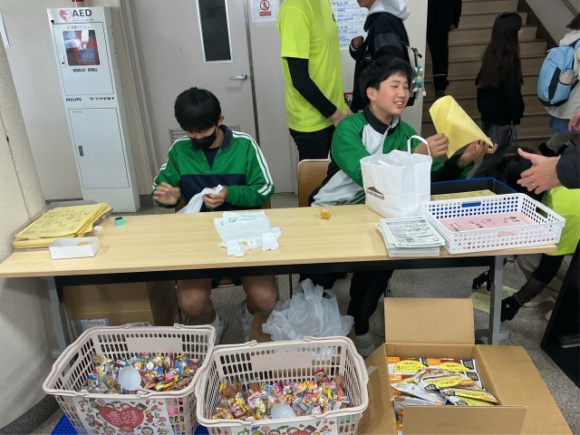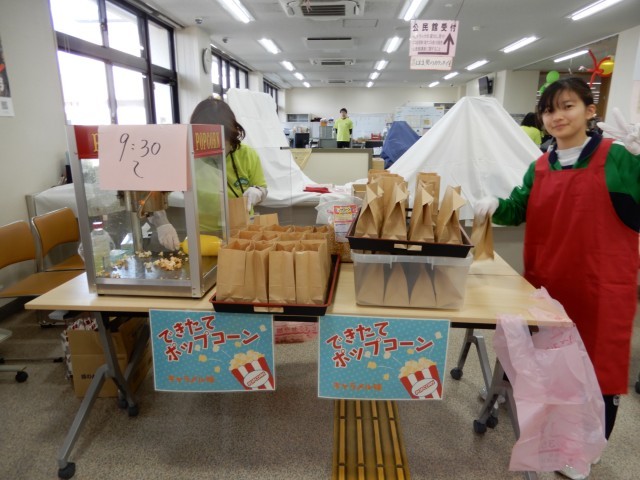 アナウンスやポップコーン販売、豚汁づくり補助、お化け屋敷の運営補助など、さまざまな場所で頑張る姿が見られました。