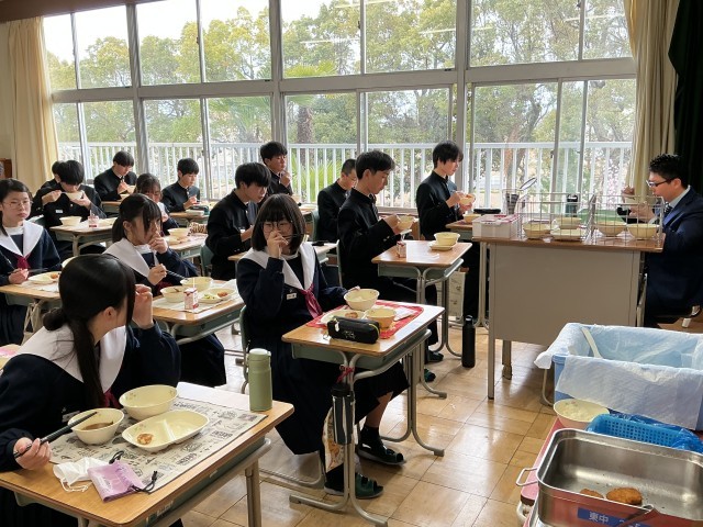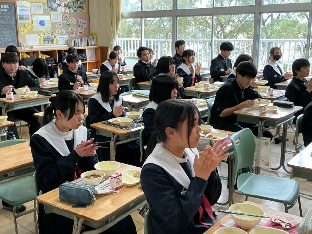 給食を食べながらも,真剣に聞き,応援の拍手を送る姿がありました。