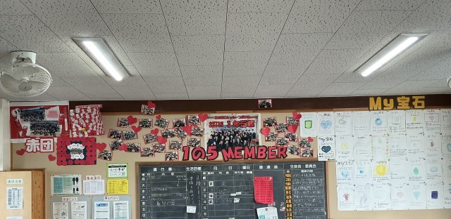 1年間の学級のあゆみが写真などでわかるように掲示してある学級があります。