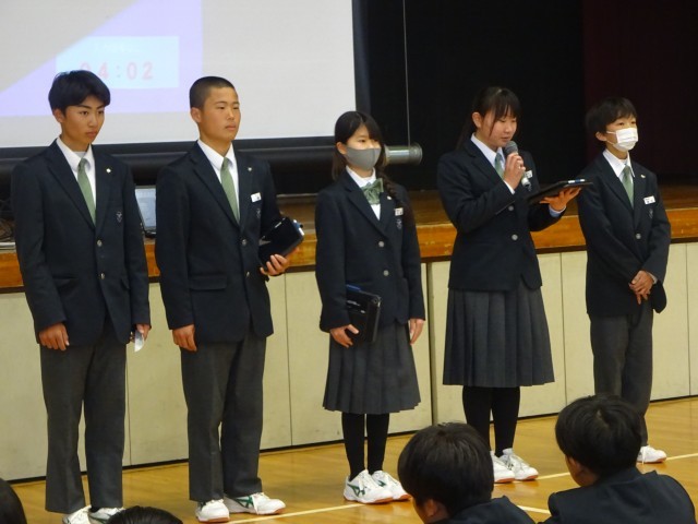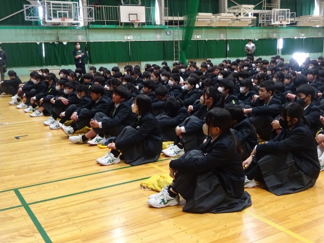 1年生最後の学年集会を行いました。1年間を振り返る代表生徒の話や春休みに向けての先生の話を真剣に聞く姿が見られました。有意義な春休みを過ごしてください。4月に元気なみなさんに会えることを楽しみにしています。