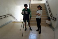 1年生が東山中学校を知るために、学級ごとに学校探検を行いました。職員室の入室の仕方を練習していました。