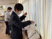 1年生の生徒たちは、カレーライスづくりに取り組みました(写真1枚目)。小学校での経験が生きているようで、なかなか手際よく作っている班が多く見られます。