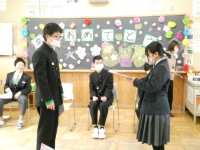 被服室では、3年生のあるクラスが裁縫を行っていました。二つの布を使って、柔らかいボールを作る授業です(写真1枚目・2枚目)。男子も女子も真剣にはさみや針をもつ姿に、頼もしさを感じました。